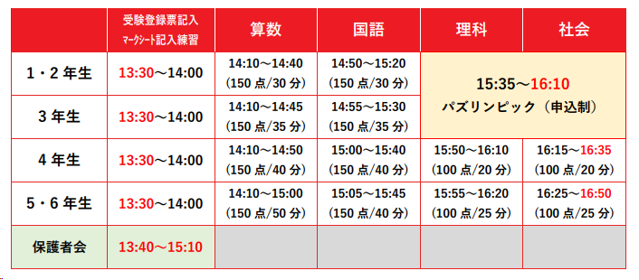 ※3年生は算・国、4・5・6年生は算・国・理・社を受験していることが条件となります - 保護者会
