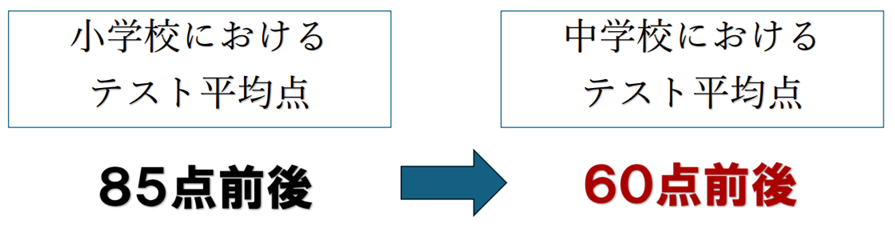 平均点が非常に高い小学校のテストと比較して、中学校のテストは難度が上がり、