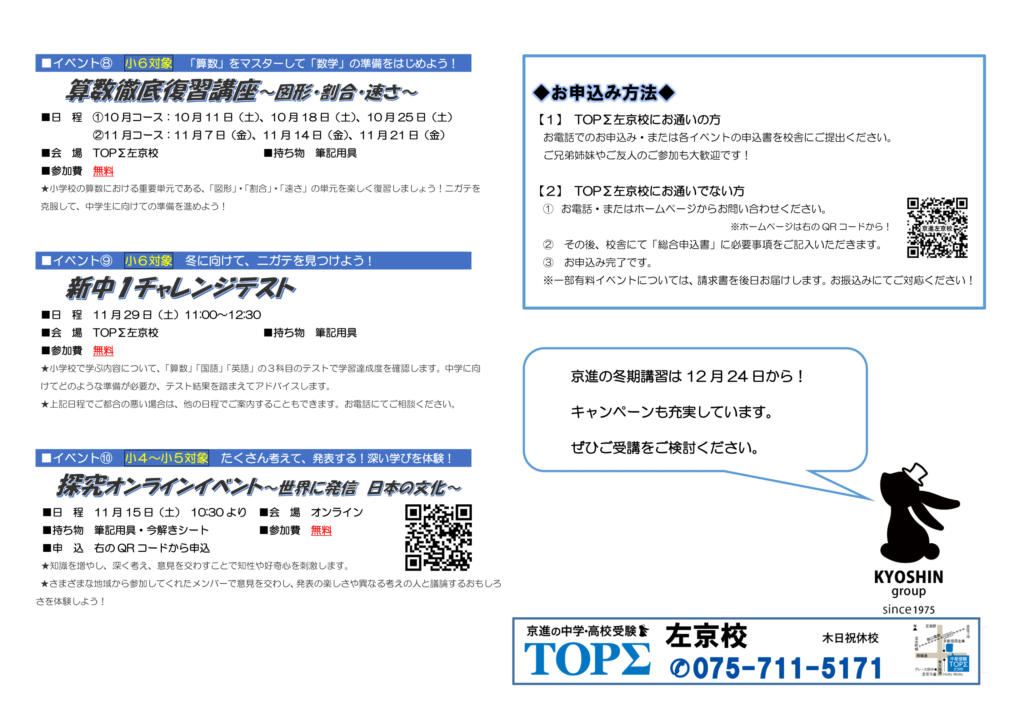 【小6のみなさんへ】算数徹底復習講座 新中1チャレンジテスト