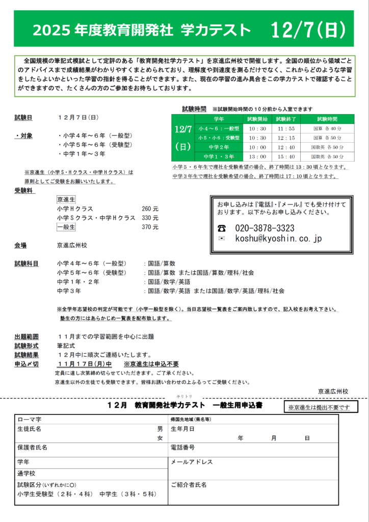 【EVENT】12月7日(日)教育開発社:学力テスト
