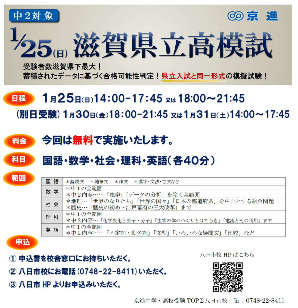 京進の中学・高校受験 TOPΣ 八日市校ページを見る