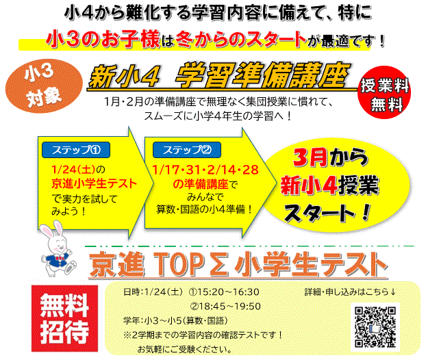 【1月・2月】新小4(小3) 学習準備講座