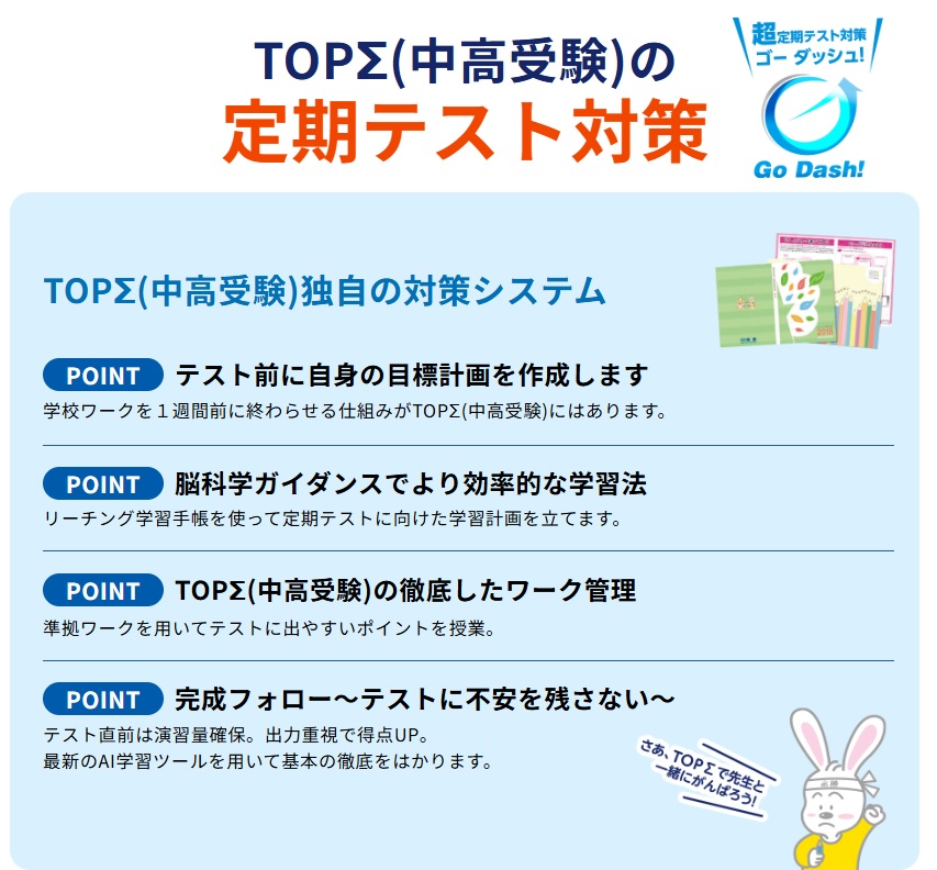 TOPΣでは、みなさんが通う中学校の定期テスト対策を実施しています!