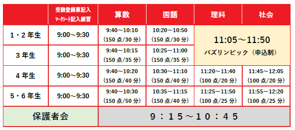 ※3年生は算・国、4・5・6年生は算・国・理・社を受験していることが条件となります - 保護者会