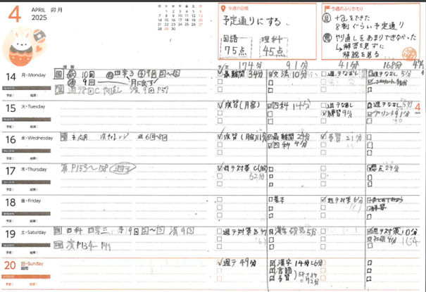 毎回、中学別、個人別の定期テスト対策時間割を配布し、充実した定期テスト対策を行います。