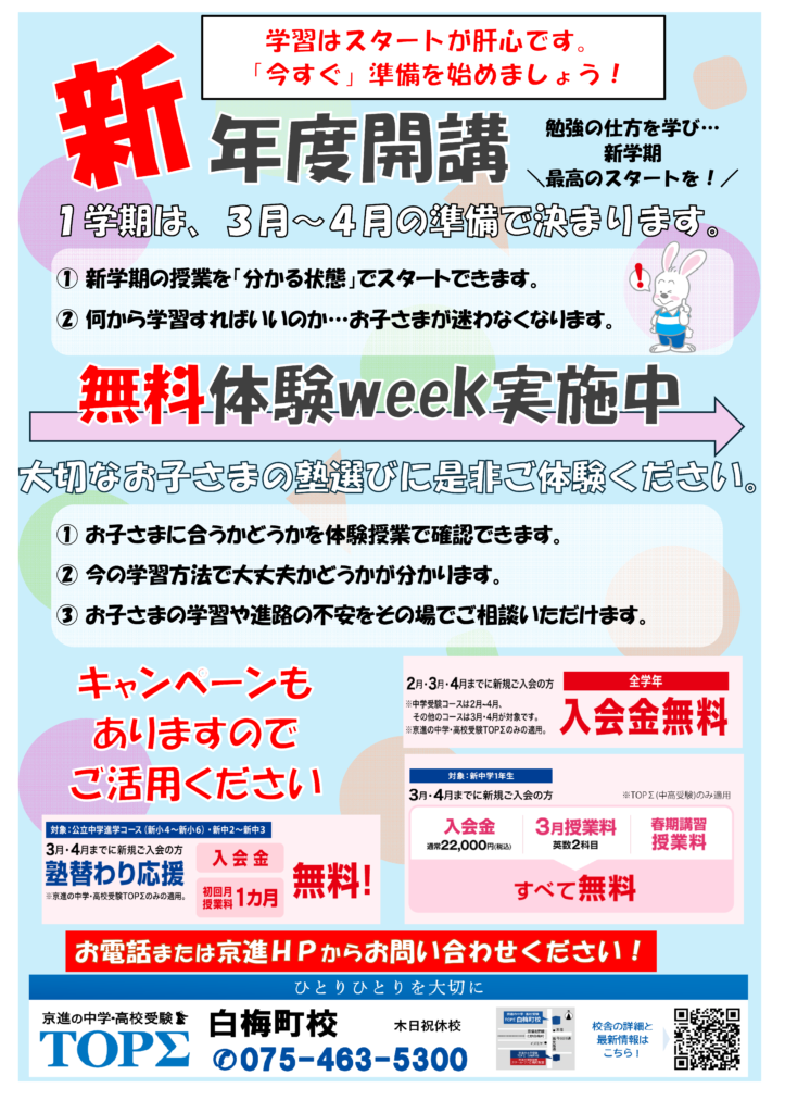 TOPΣ白梅町校(中高受験)でいっしょに頑張る仲間を受付中!(下記画像をクリックしてお問い合わせください)