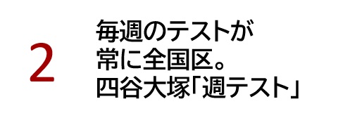予習シリーズのカリキュラムに沿って毎週受験する四谷大塚の「週テスト」は全国規模で行われるテストですので、自分の実力と全国の中での位置がリアルタイムで測定できます。テストの問題も、最新の中学受験動向にあわせて毎年レベルアップをくり返しており、良問ぞろいとなっています。