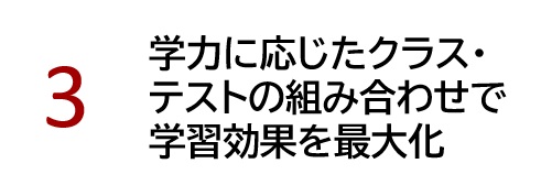学習塾で行う学力別の「クラス分け」はお子様の短期・中期の目標となる一方、ともすれば強いプレッシャーともなります。「クラス」のそもそもの存在意義は、「お子様がよりよく学ぶための場」であること。「そこにいること」が目的ではなく、「そこで学ぶこと」が最も大切です。京進では「クラス」移動の回数を抑え、お子様がクラスを自分の「ホーム」ととらえて安心して学習に打ち込める環境を整えています。