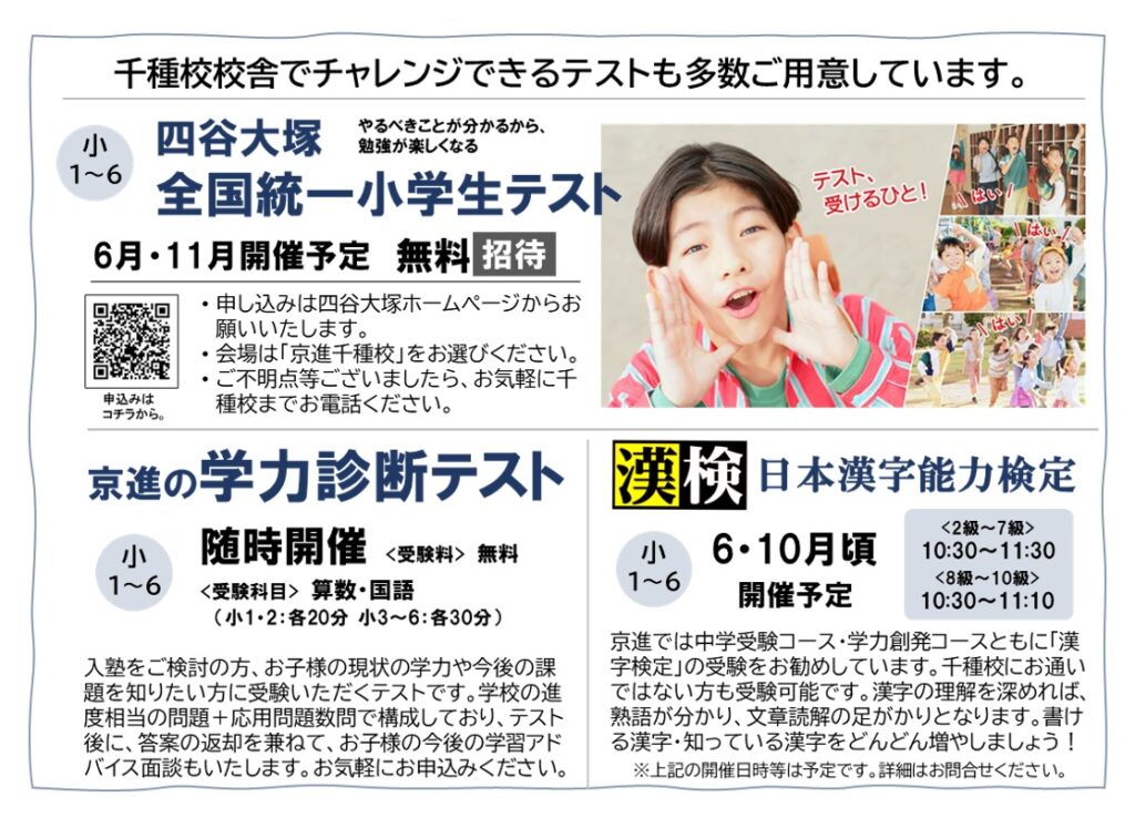 11/3(月・祝)四谷大塚全国統一小学生テストのご案内