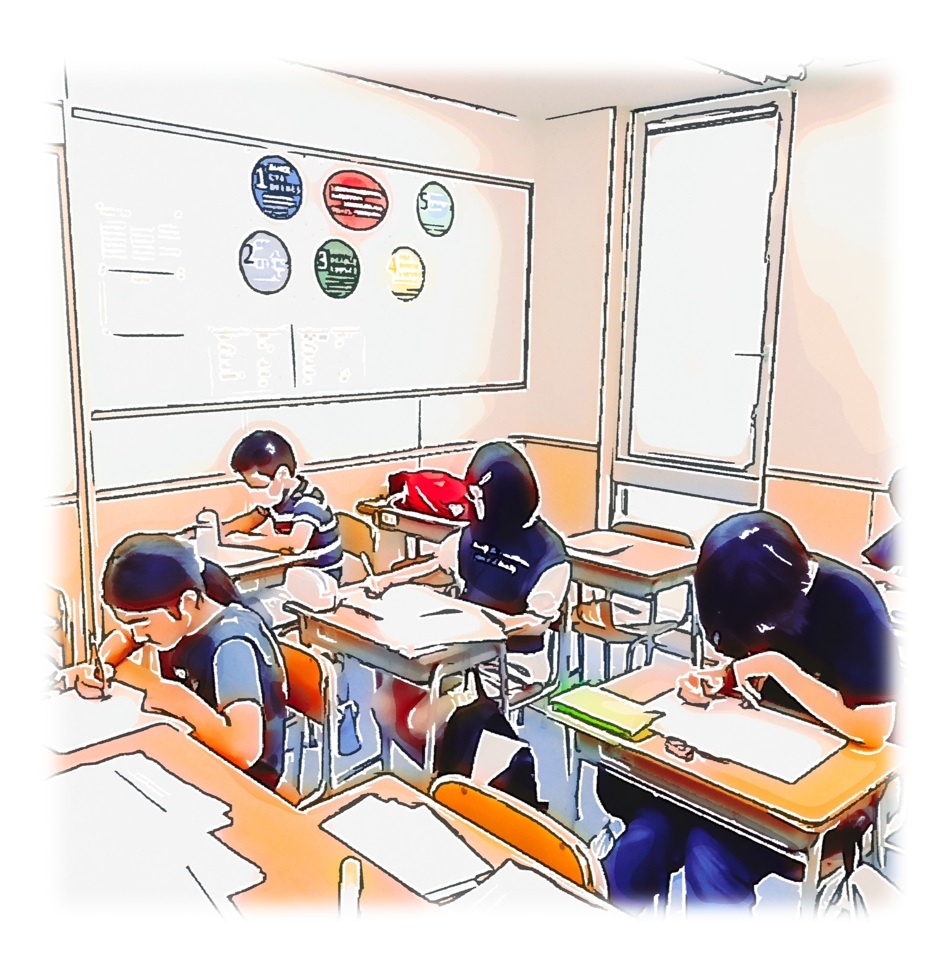 授業終了後や授業がない日の空き教室は自習室として活用いただけますので、宿題を家に持って帰らず、自習室で終了させるお子様も大勢いらっしゃいます。授業に入っていない講師がお子様の質問にお答えする質問教室も設置しておりますので、質問が発生するかもしれない少し難しめの宿題を優先的に自習室で取り組み、質問まで完了させて帰宅されるケースも多く見られます。保護者様にも安心のサポート体制となっております。