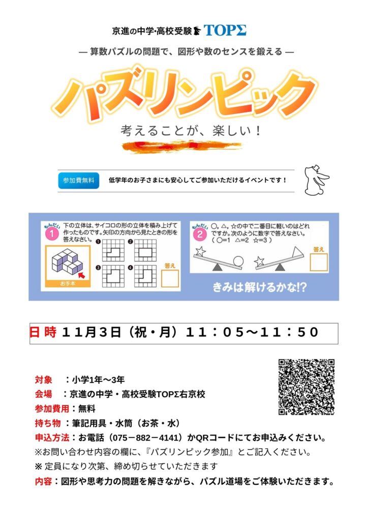 11/3(祝・月) 算数 パズルイベント受付中 ※画像をクリックしてください。