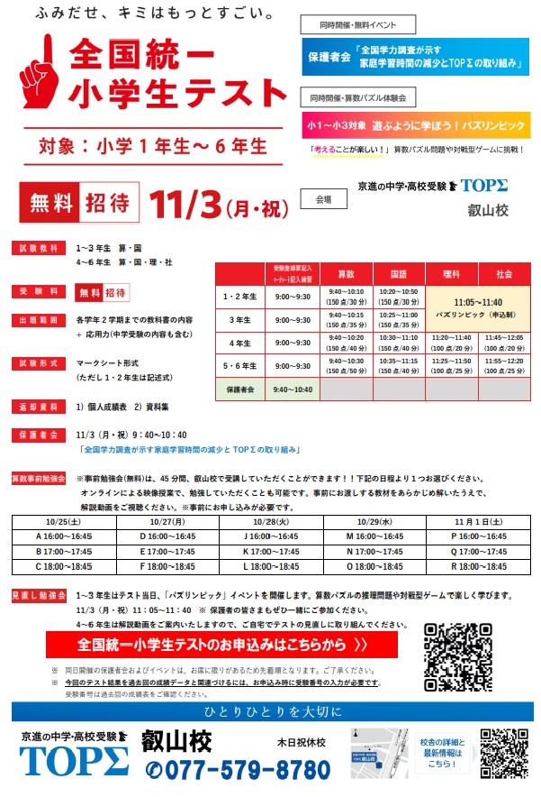 ★集まれ、小学生! 四谷全国統一小学生テスト!