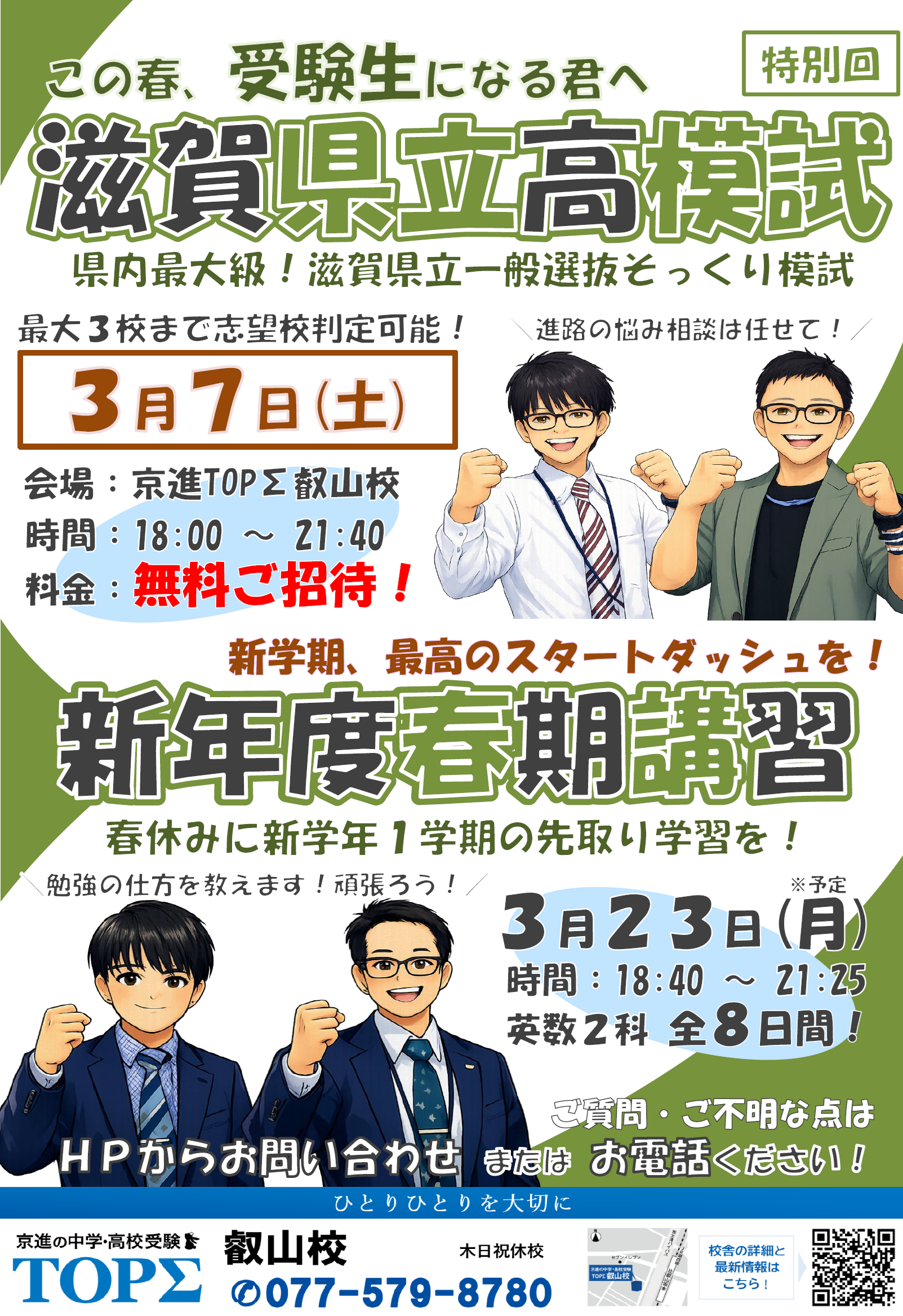 この度は、京進の中学・高校受験TOPΣ叡山校のHPをご覧いただきありがとうございます。