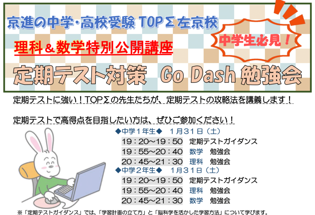 注目!左京校の定期テスト対策も1月31日(土)から実施!