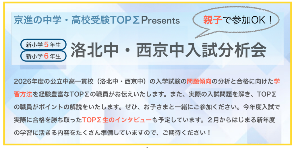 必見!1月31日(土)実施!洛北中・西京中を目指す方へ!