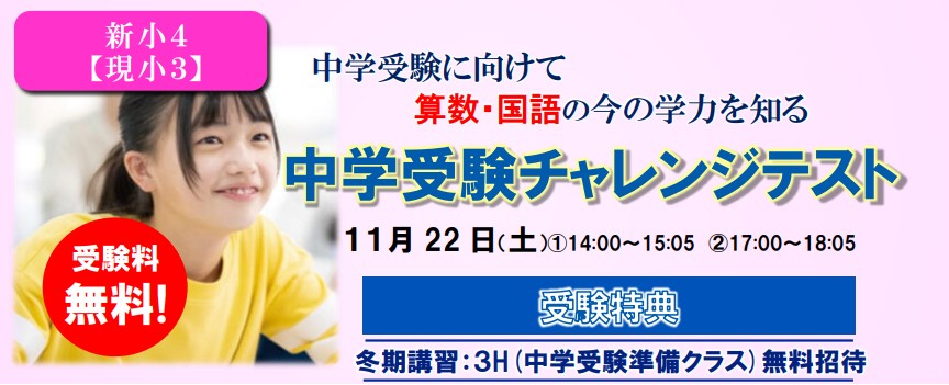 特 典:冬期講習3J(中学入試準備クラス)へ無料でご招待