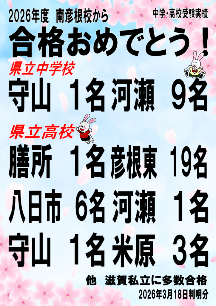 中高受験TOPΣ南彦根校 合格実績