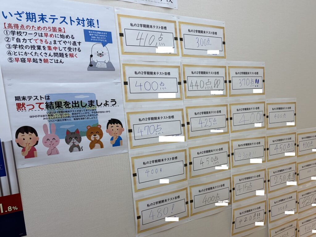 TOPΣ城山台校では写真のようにみんなで目標を設定し、廊下に掲示しています!(お名前の部分を隠す加工をしています)
