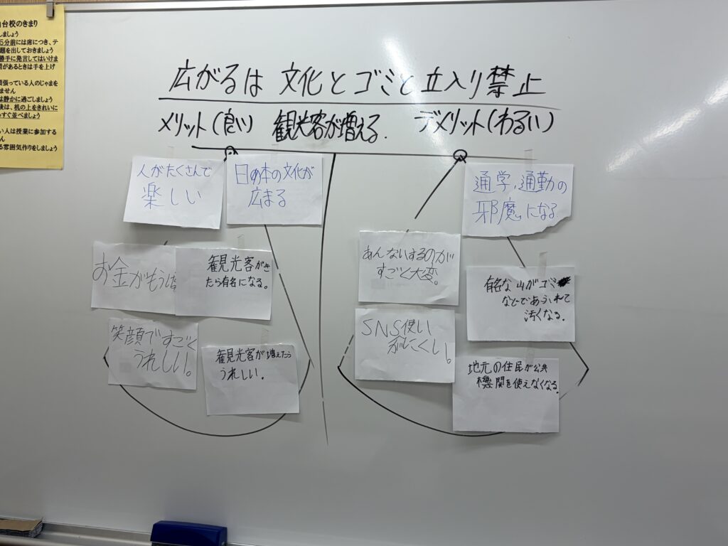 自分の考えやほかの人の考えをまとめる思考ツールを使って楽しく学習してていますよ!