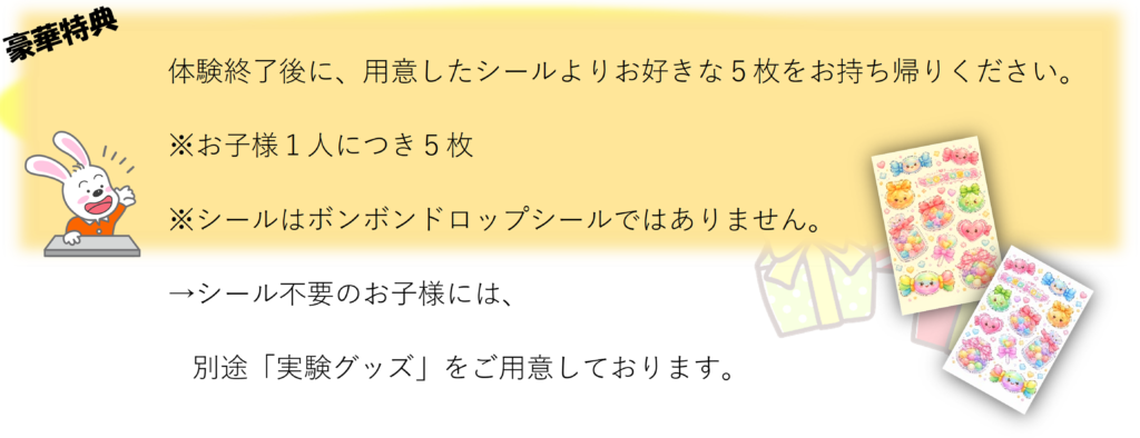 - 【持ち物】筆記用具・シール帳(お持ちの方のみ)