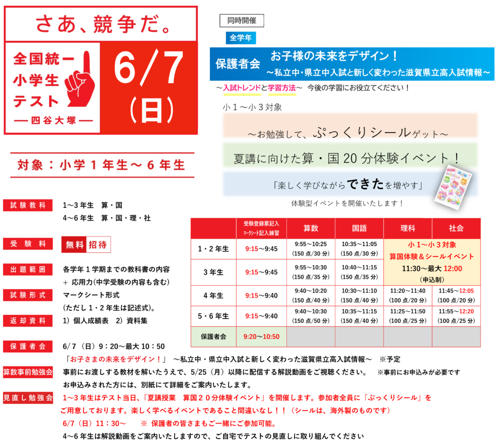 ■6月四谷大塚全国統一小学生テスト(大津市在住の方のみ)