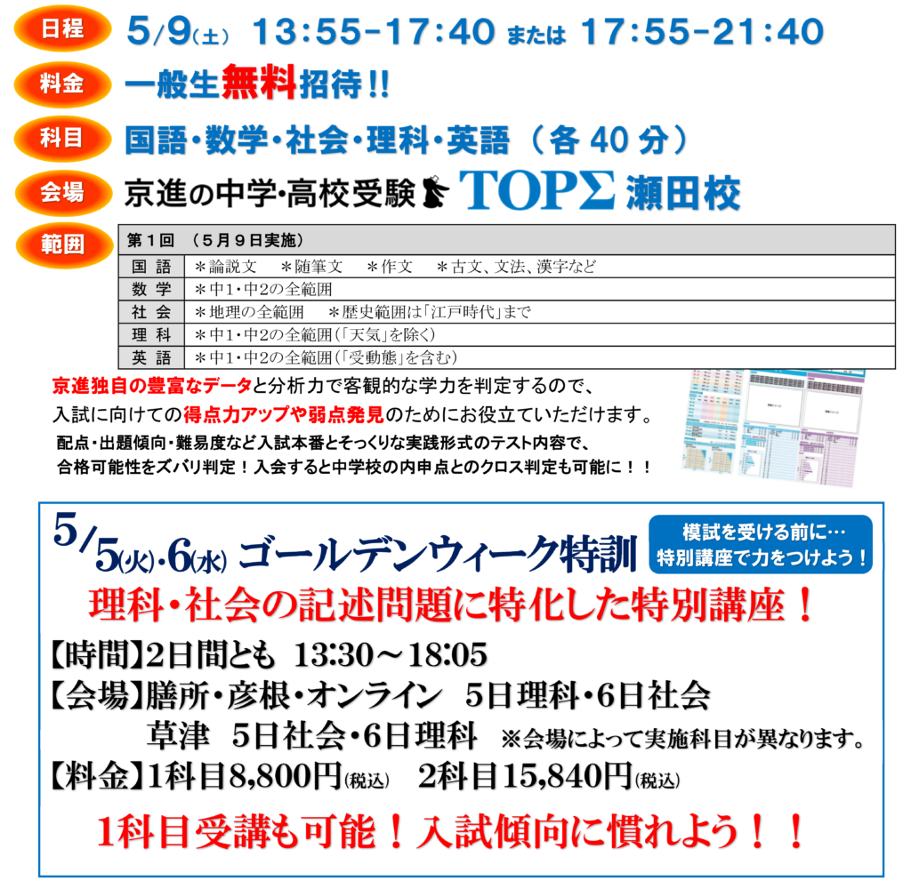 | 校舎名 | 京進の中学・高校受験 TOPΣ 瀬田校 |