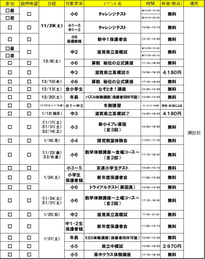 2025冬期講習 受付中|大津市|アルプラザ瀬田 4階|低学年 適正少人数指導|高校受験対策|