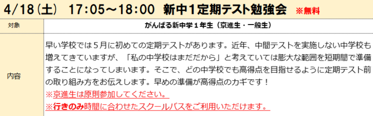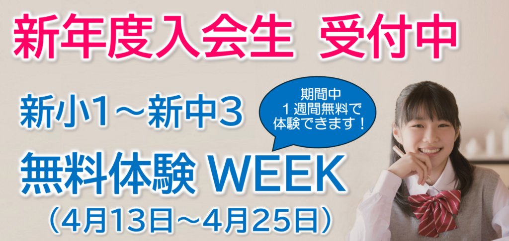 - 【対象学年】4月以降、新小4~中3になられるお子様