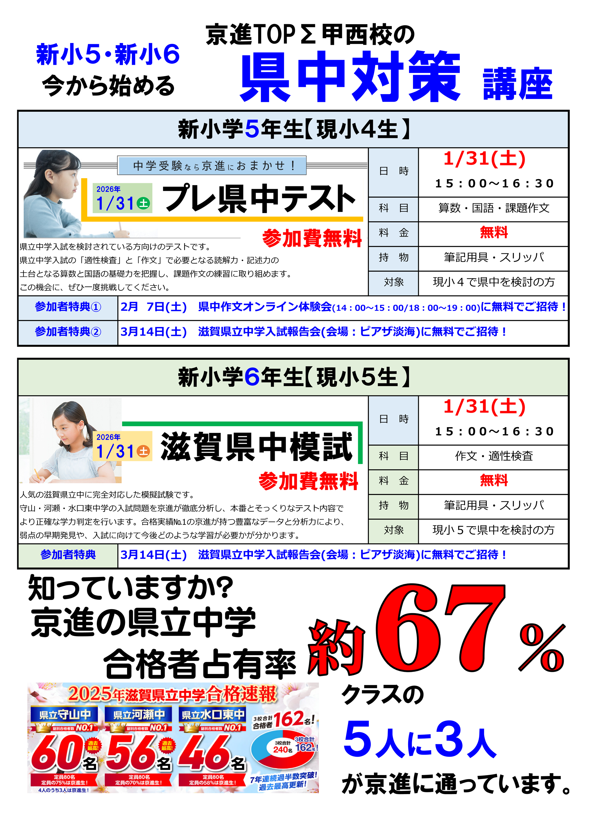 また、指導力でも県立中学・高校入試では地域No1、そして滋賀県No1の合格実績とノウハウがあります。