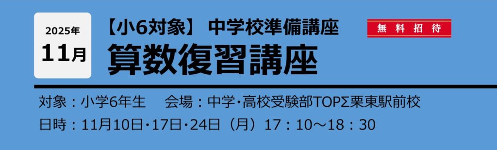 9月開校!【中3・小6県中対象】日曜特訓講座 NEW!本的な受験対策むけの演習を行います。